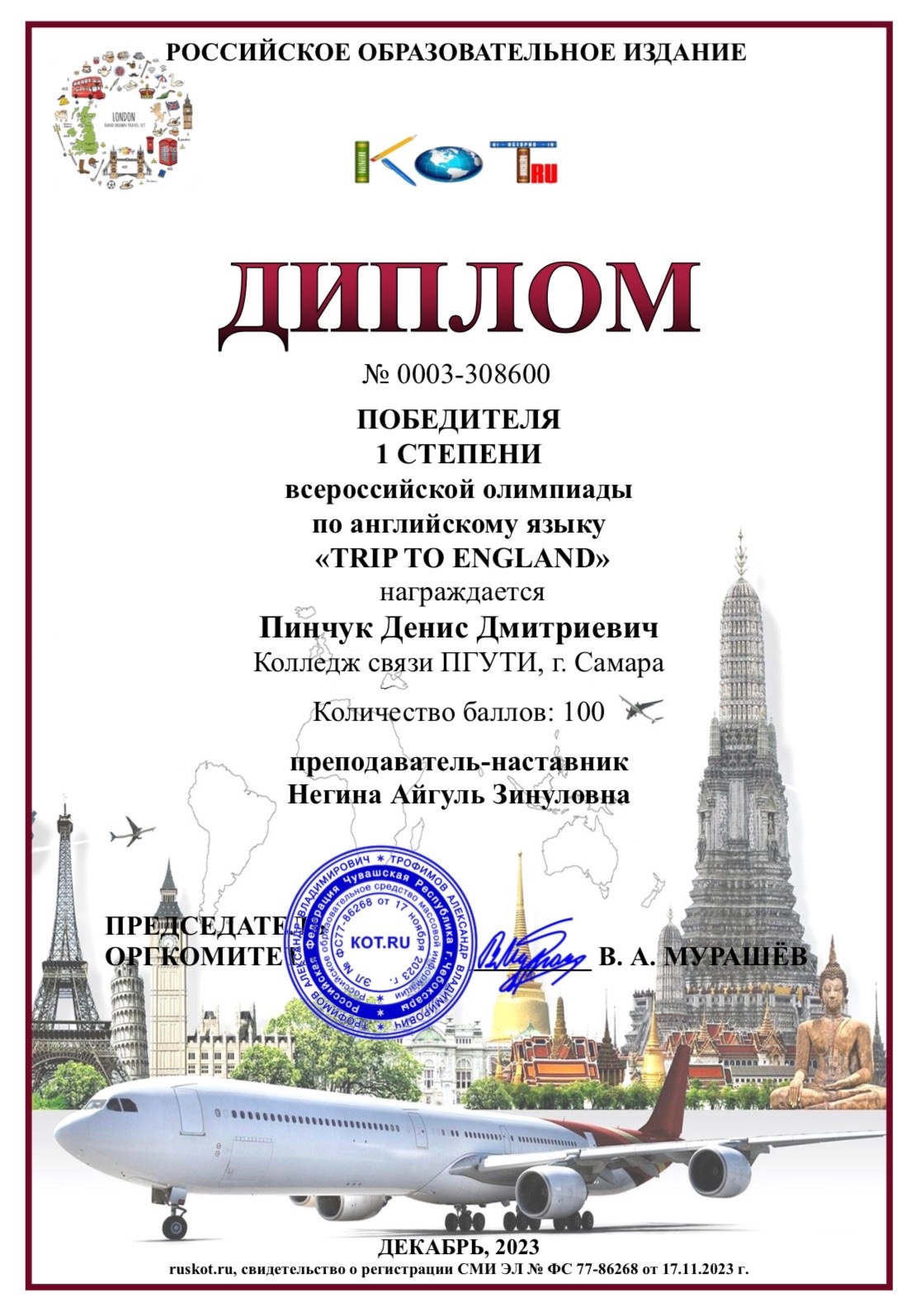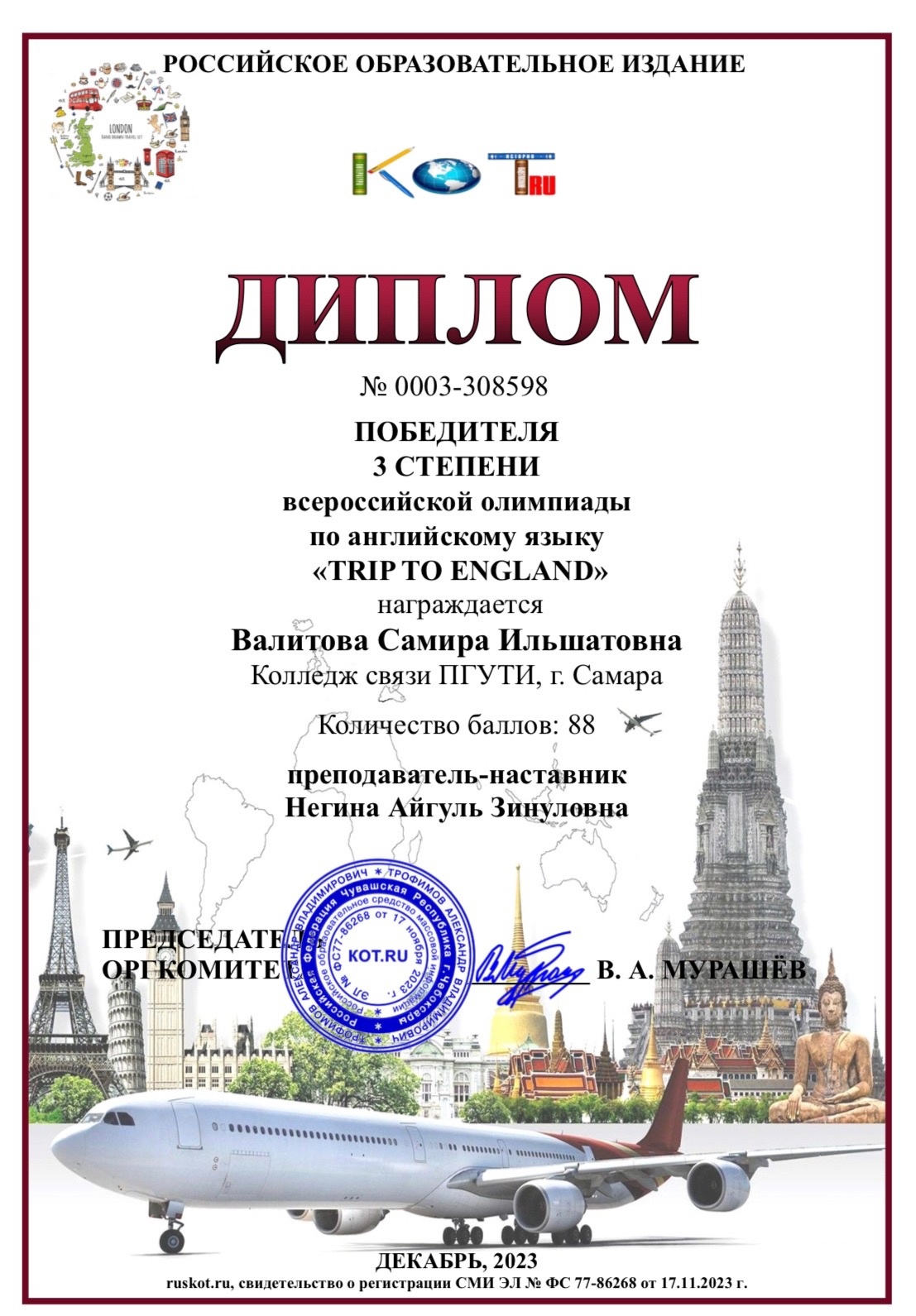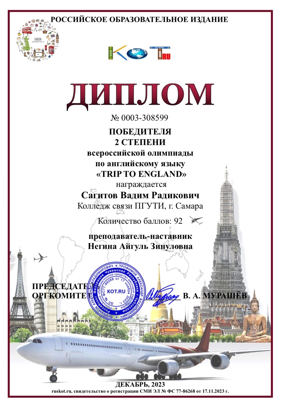 групп 2ИБ-3, 2ИБ-4к, 2ИСПв-4, 1 ИСПв-6, 1ИСПв-7 под руководством преподавателя Негиной А.З. приняли участие во Всероссийской олимпиаде по английскому языку "Trip to England".