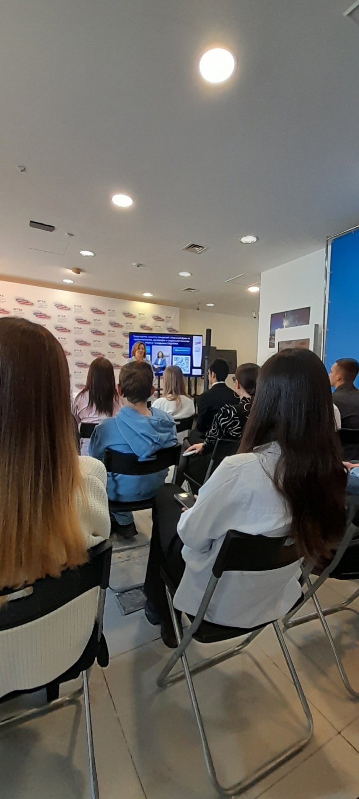 Сегодня волонтеры, участники молодежного центра и курсанты ВПК"Пламя КС" вместе с начальником отдела ВР Ефимовой С.А. приняли участие в акции "Спроси у депутата", которая состоялась в Штабе общественной поддержки Самарской области.На вопросы отвечала Председатель комитета по здравоохранению, демографии и социальной политике Самарской Губернской Думы М.Г.Сидухина. В рамках дискуссии выступили студенты колледжа связи:Сергей Дорогойченко,Мелешкина Вероника,Надина Виктория и Ивлев Игнат.Они активно обсуждали вопросы, касающиеся студенческой жизни и работы депутата, высказывали свою гражданскую позицию.Результатом дискуссии стало приглашение на день дублера депутата всех наших студентов.Выражаем благодарность Марине Геннадьевне Сидухиной за проведенную встречу, а ребят благодарим за активную жизненную позицию и будем ждать когда они проведут с депутатом день дублера!