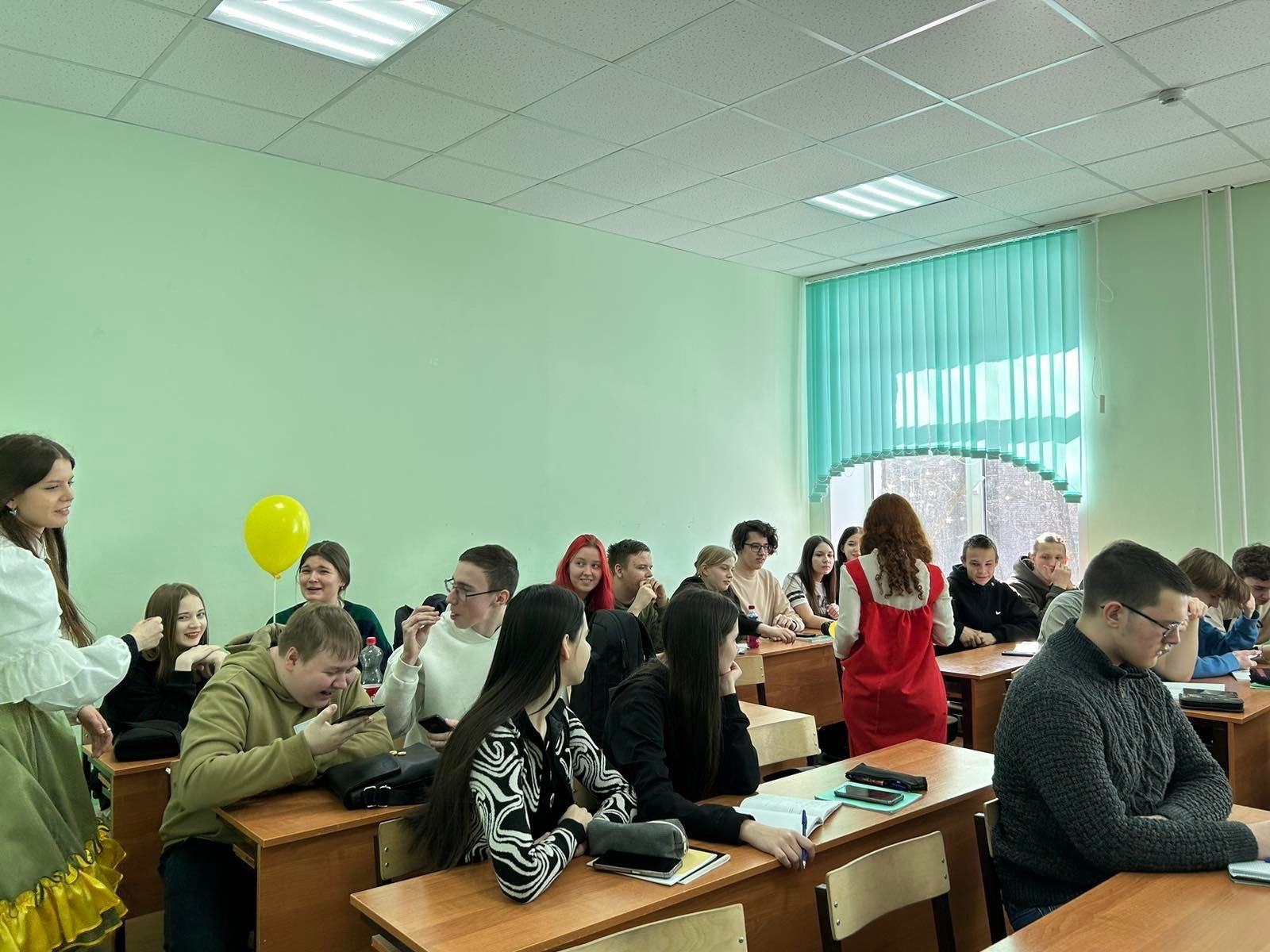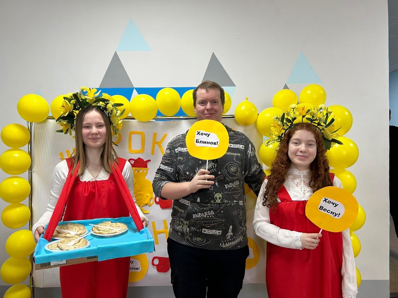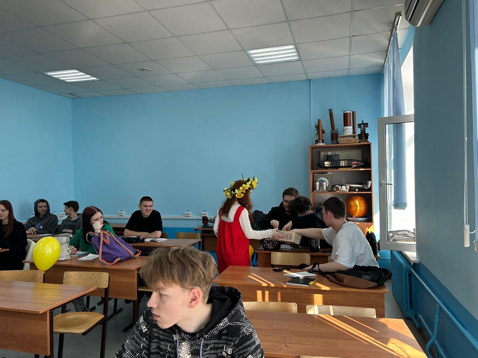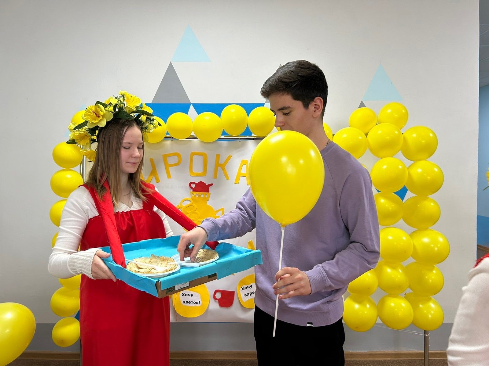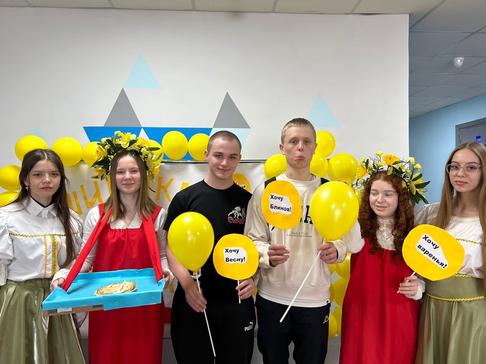 В колледже активистами молодежного центра и волонтерами проведена акция празднования Масленицы. Ребята сделали фотозону, угощали блинами, сушками, конфетами, раздавали желтые шарики- "блинчики" . Можно было написать пожелание- блинчик для друзей и сфотографироваться с веселым блинчиком на палочке!