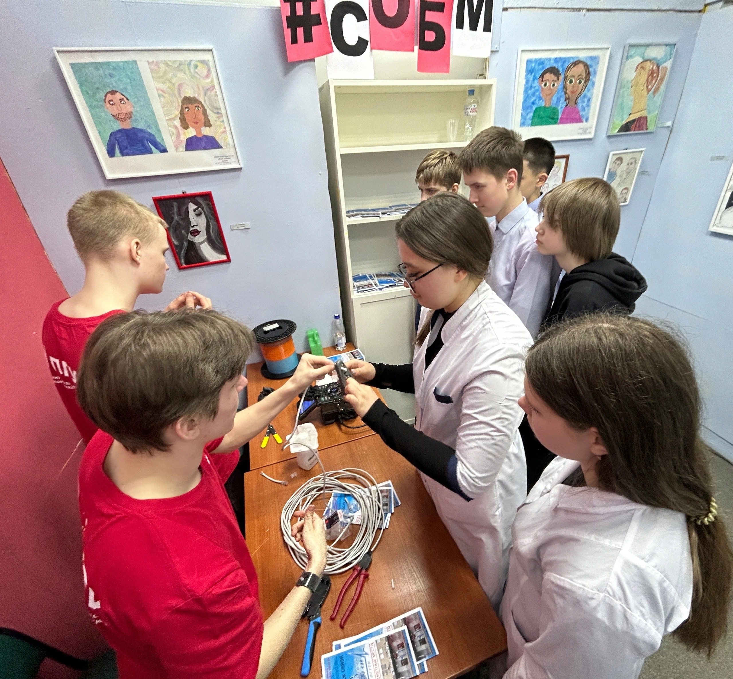 Студенты колледжа показывают как правильно обжать витую пару, варить оптоволокно, а сотрудник колледжа рассказывает о возможностях обучения в колледже и раздает информационные буклеты!