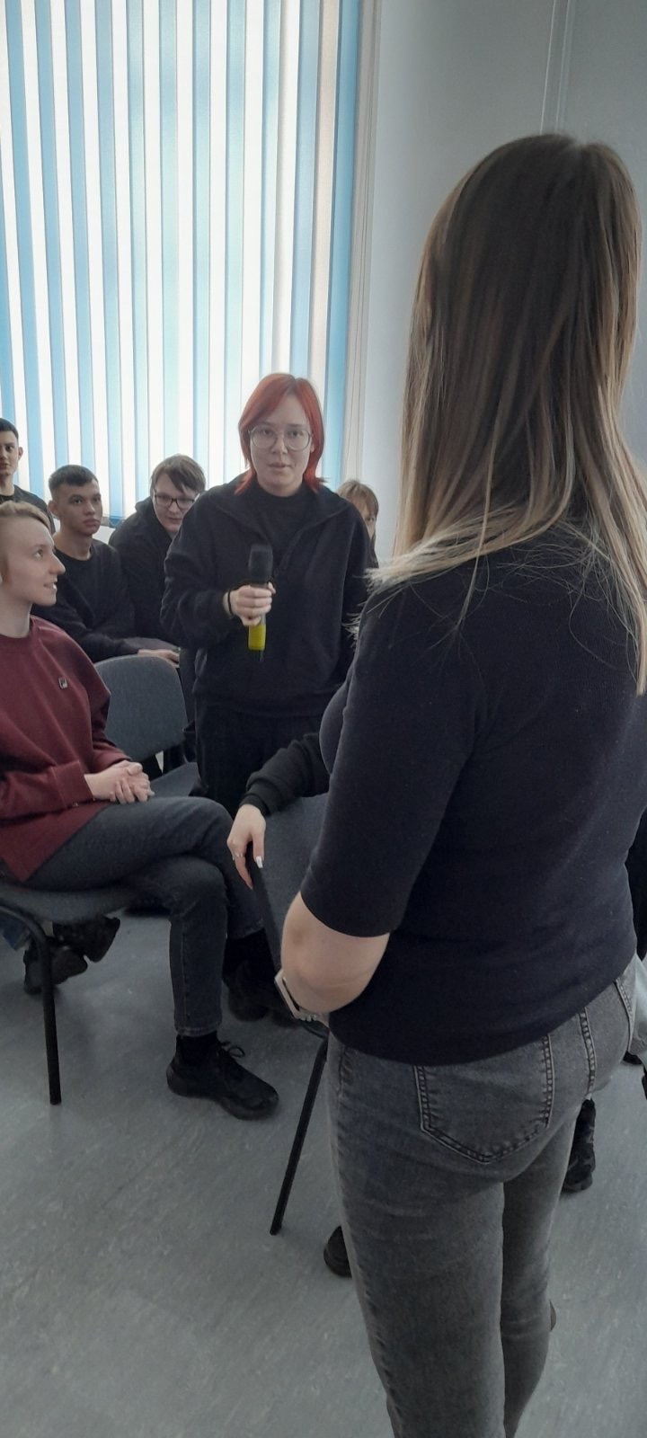 Сегодня в колледже прошла интерактивная беседа педагога-психолога КЦСОН Октябрьского подразделения Тимошенко Е.В.по профилактике суицида.В игровой форме, с элементами тренинга психолог рассказала об особенностях подросткового возраста,особенностях восприятия.Ребята активно брали микрофон, высказывали свою точку зрения, шло жаркое обсуждение темы.Также педагог-психолог колледжа Гордеев А.В.добавил по теме свое мнение. В завершении выступила начальник отдела ВР колледжа Ефимова С.А.Были розданы памятки, визитки КЦСОН.Благодарим всех участников мероприятия.