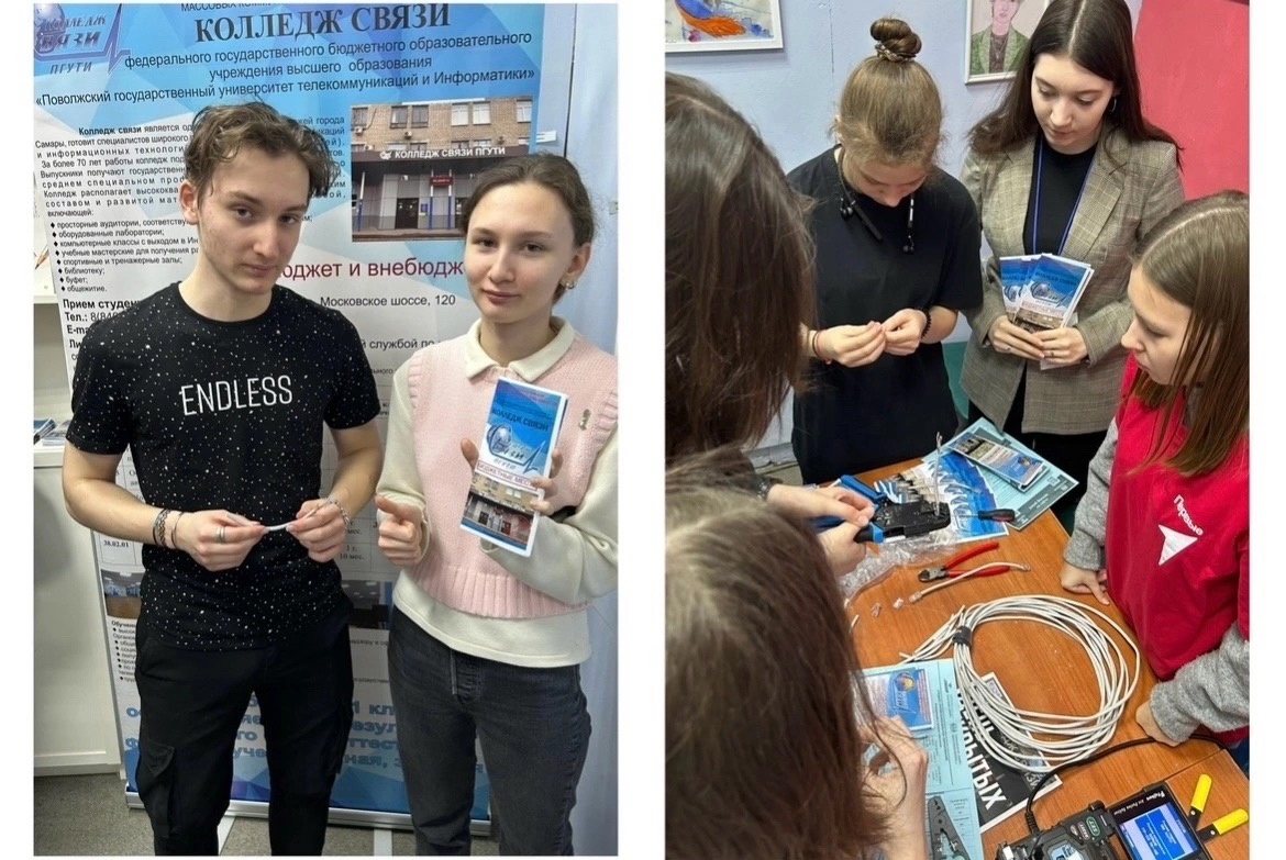 Студенты третьего курса показывают мастер-класс по обжимке витой пары кабеля и сварке оптоволокна, а сотрудник колледжа рассказывает о специальностях, об условиях поступления в колледж и раздает информационные буклеты!