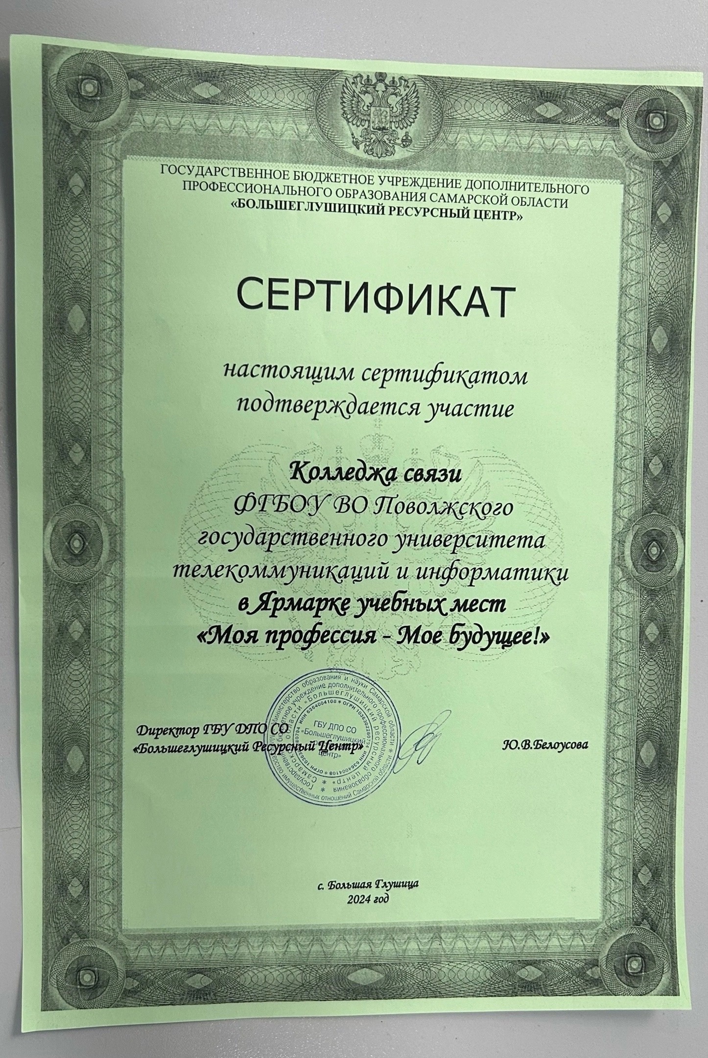 Ярмарка учебных мест «Моя профессия - Мое будущее» прошла 27.02.2024. Школьники 9-х и 11-х классов Большеглушицкого района интересовались о поступлении в КС ПГУТИ, о специальностях и задавали интересующие их вопросы, а сотрудники Прудченко Д. Д. и Бурделова М.М отвечали на них. Всех благодарим за такое мероприятие!