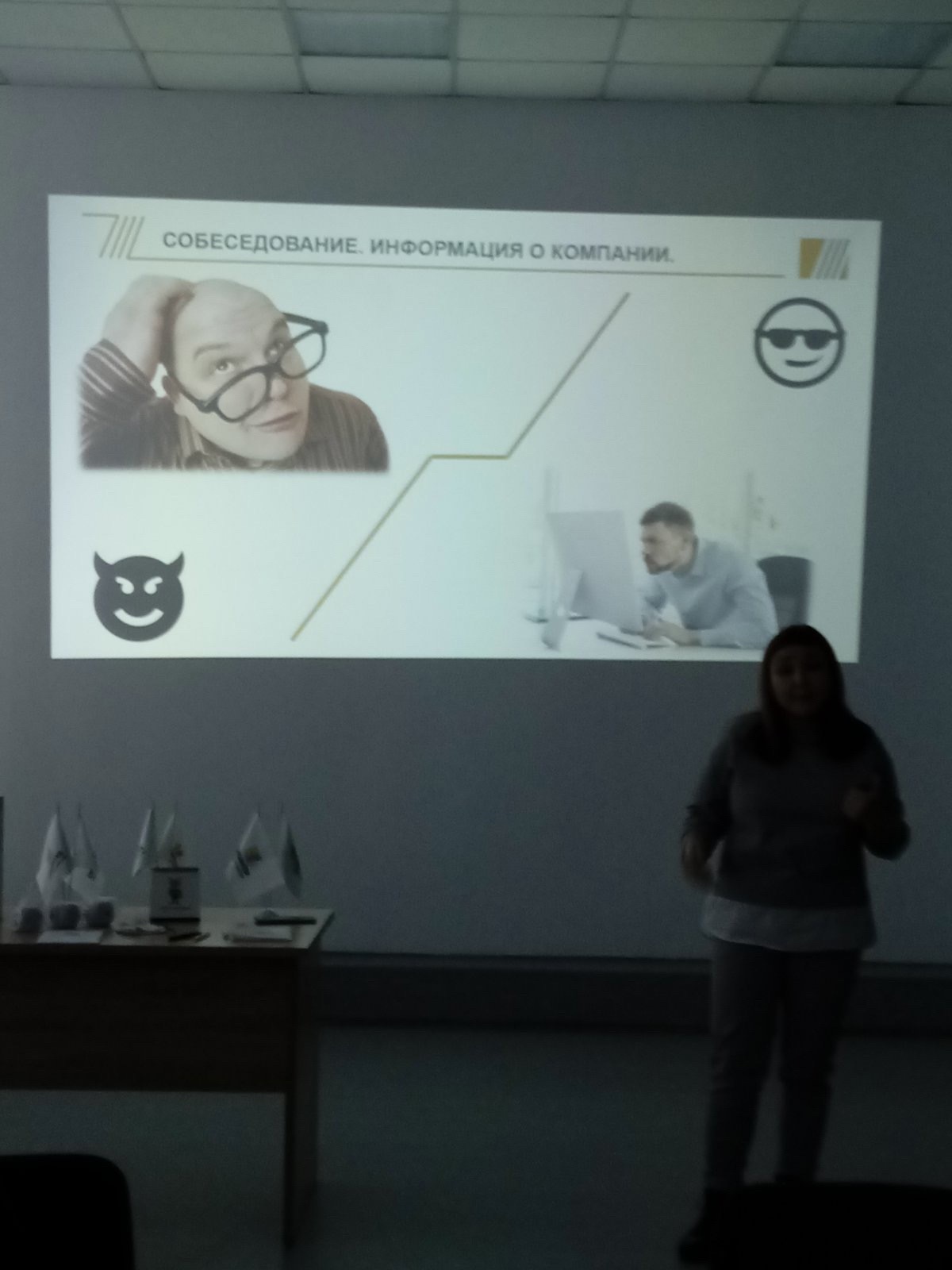 26.03.2024г.в читальном зале КС ПГУТИ состоялась встреча с главным специалистом отдела оценки и развития персонала ООО ИК " СИБИНТЕК" Сундуталиевой Алиëй Кажуевной со студентами третьего курса гр. ИКС-2, ИКС-3к и ССА-5 на тему "Секреты трудоустройства". Ребята узнали о вариантах прохождения производственной практики в ООО ИК " СИБИНТЕК", про работу компании и о "горячих" вакансиях. Студенты активно участвовали в беседе. Самые инициативные получили призы от компании. Будем продолжать сотрудничество с этой организацией. В дальнейшем планируем провести экскурсию в ООО ИК "СИБИНТЕК".