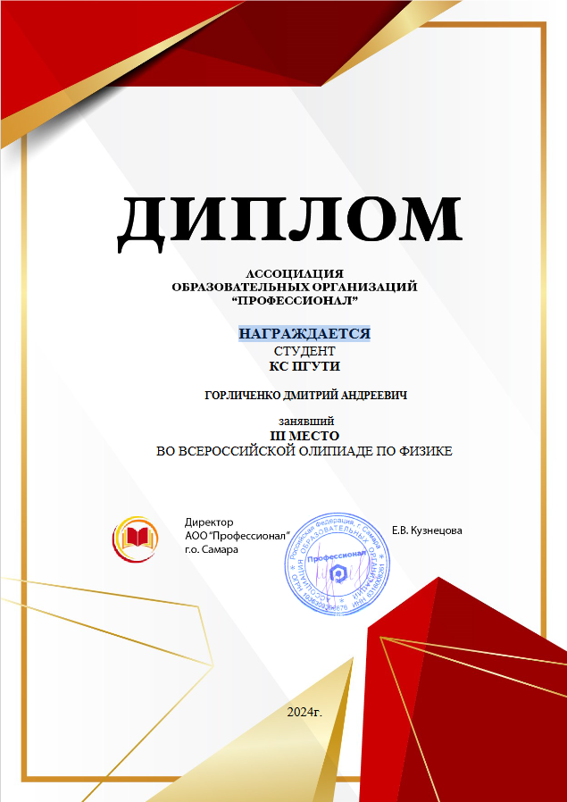 12 апреля 2024 года студенты группы 1ИСПП-22 Горличенко Дмитрий, Панкрашин Арсений и Шувалов Александр под руководством преподавателя Кусаевой Зарины Владимировны приняли участие во Всероссийской олимпиады по физике среди студентов 1 и 2 курсов ПОО и школьников 10-11 классов. Поздравляем Горличенко Д. и Панкрашин А. с победой - III место.