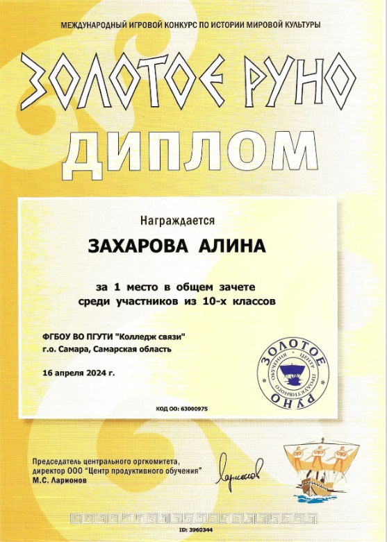 16 апреля 2024 г. студенты 1 курсов приняли участие в Международном игровом конкурсе по истории мировой культуры «Золотое руно».