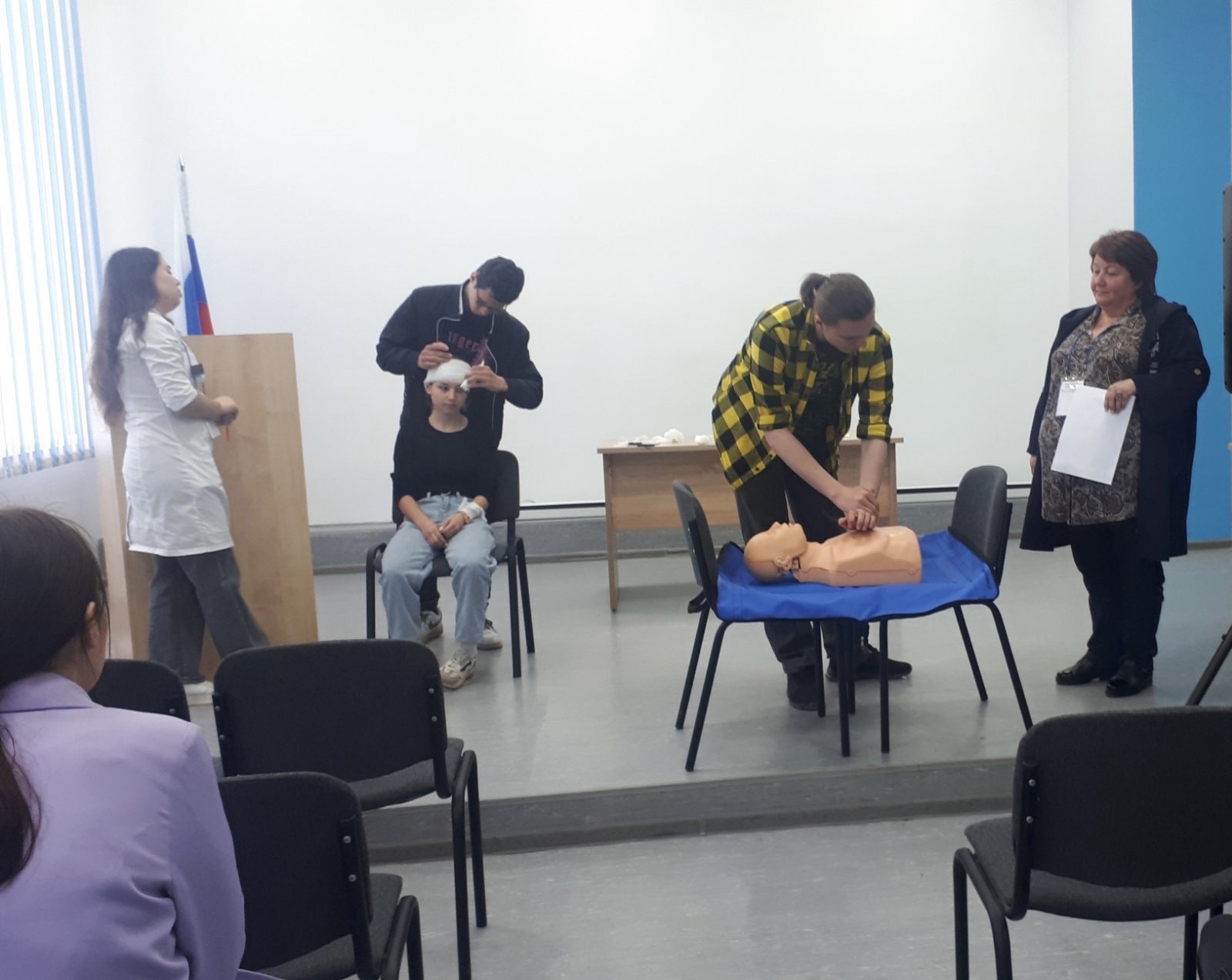 Конкурс проходил в два этапа-заочный-с предоставлением презентации по теме и очный- демонстрация практических и теоретических навыков самопомощи. В конкурсе приняли участие студенты колледжей, не имеющие специальных медицинских знаний.