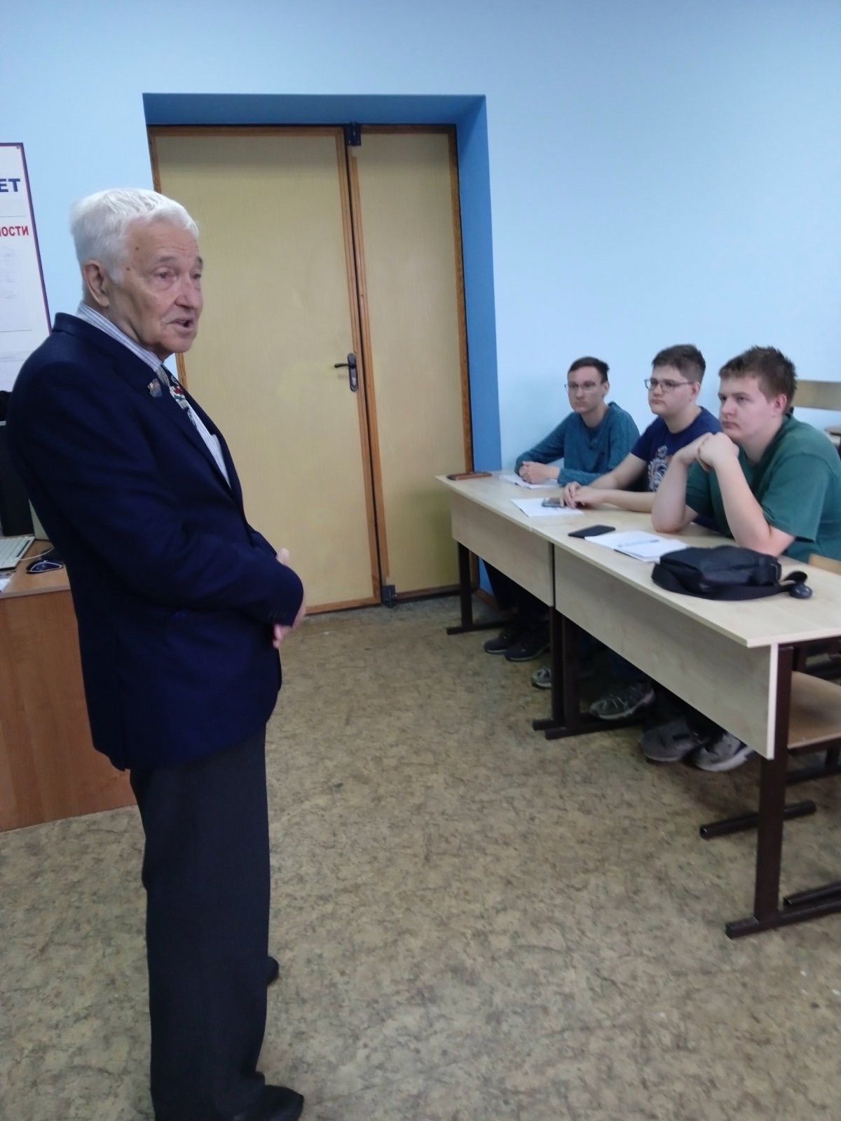 Павел Владимирович Коныгин – полковник в отставке, председатель Совета ветеранов Промышленного района г.о. Самара, поэт и композитор, посетил сегодня наш колледж связи и рассказал студентам группы 2 ИСПИ-6к о своей военной и трудовой биографии, о различных точках Советского Союза, где ему пришлось служить, в том числе и на границе СССР, о том, как выйдя в отставку, он продолжает служить России, проводя большую общественную работу по патриотическому и нравственному воспитанию молодежи.