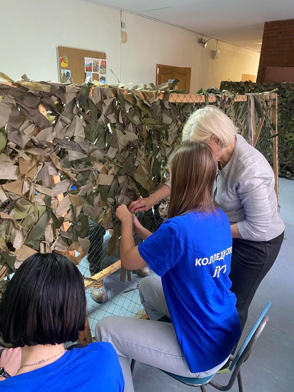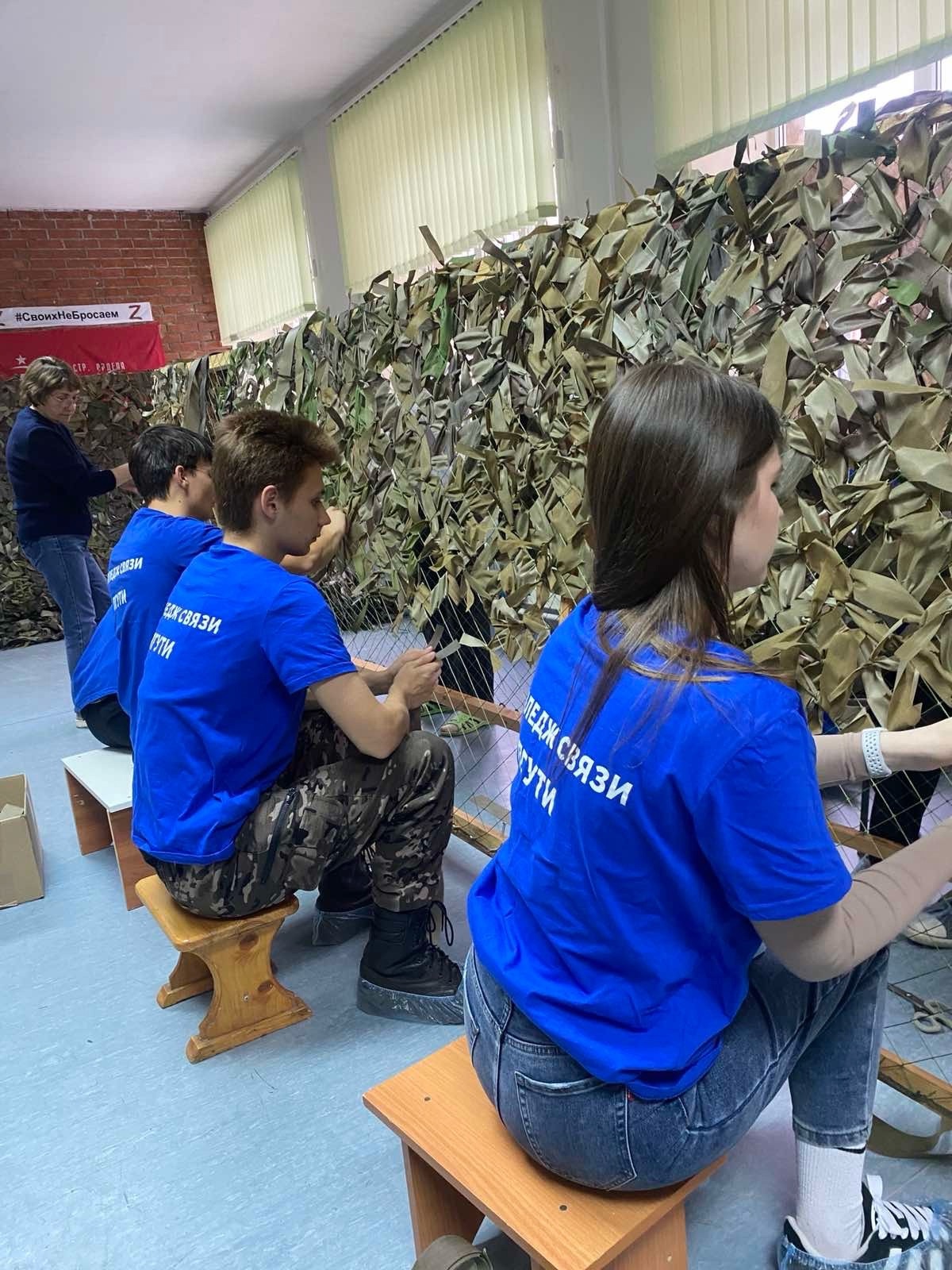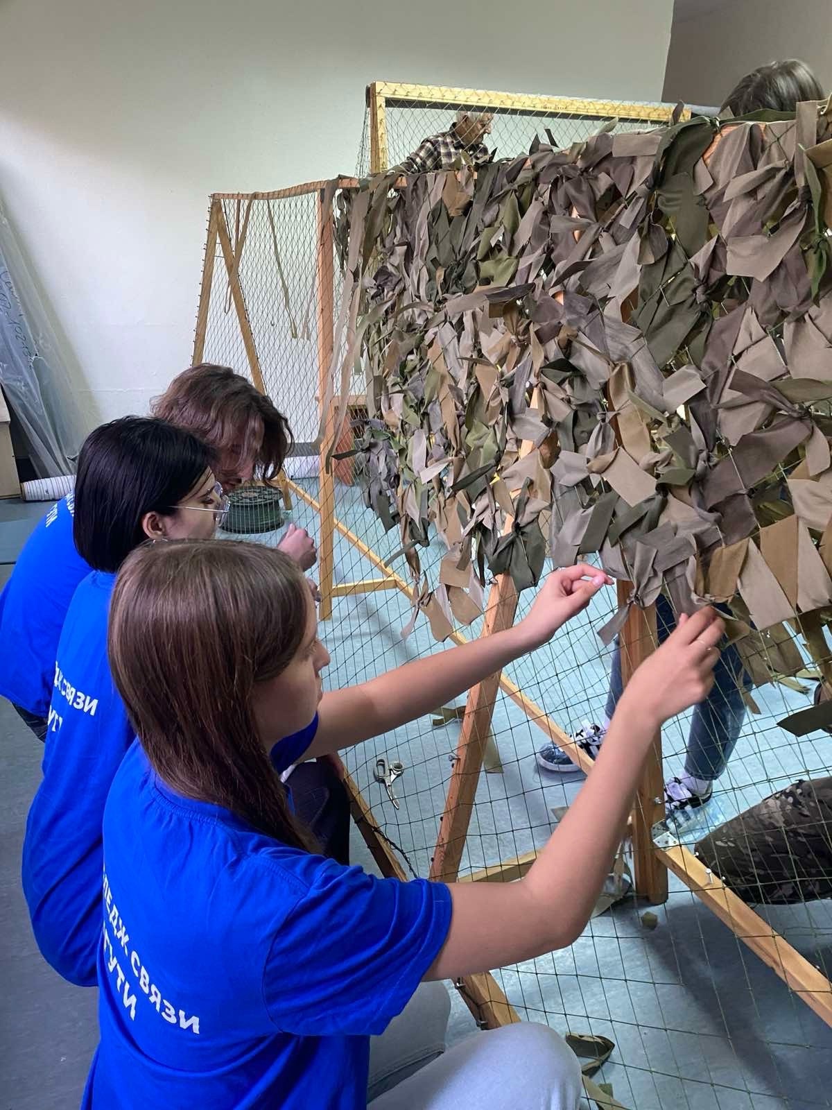Студенты-волонтеры создавали маскировочные сети, которые помогут нашим героям оставаться незаметными на поле боя.