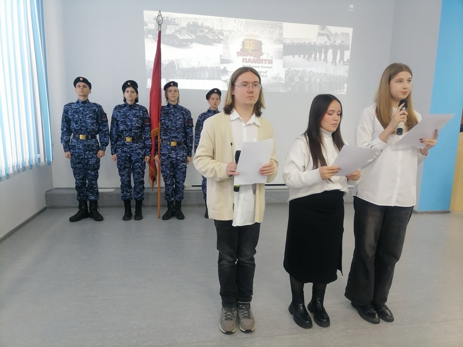 7 ноября в Самаре традиционно проходит Парад памяти. Студенты колледжа связи - волонтеры, активисты и курсанты военно- патриотического клуба провели торжественное мероприятие , посвященное Параду. Ребята пели песни военных лет- Чернова Василиса, Умнов Николай, Гадиров Эльдар. Ивлев Игнат проникновенно прочитал стихотворение К. Симонова «Жди меня». Знаменная группа -Игуменов Вадим, Солдатенков Степан, Касымова Полина, Климина Анастасия вынесла историческое знамя колледжа на сцену. Вели мероприятие -Демешина Дарья,Зайцев Даниил,Урумбаева Дарина. За видеоряд отвечали- Жулидов Кирилл, Рубашкин Вадим, Паянэ Артем. Память солдат, участников Парада 1941г. в г. Куйбышеве почтили минутой молчания. Мы помним! Мы гордимся! #Парадпамяти #ОтделВр