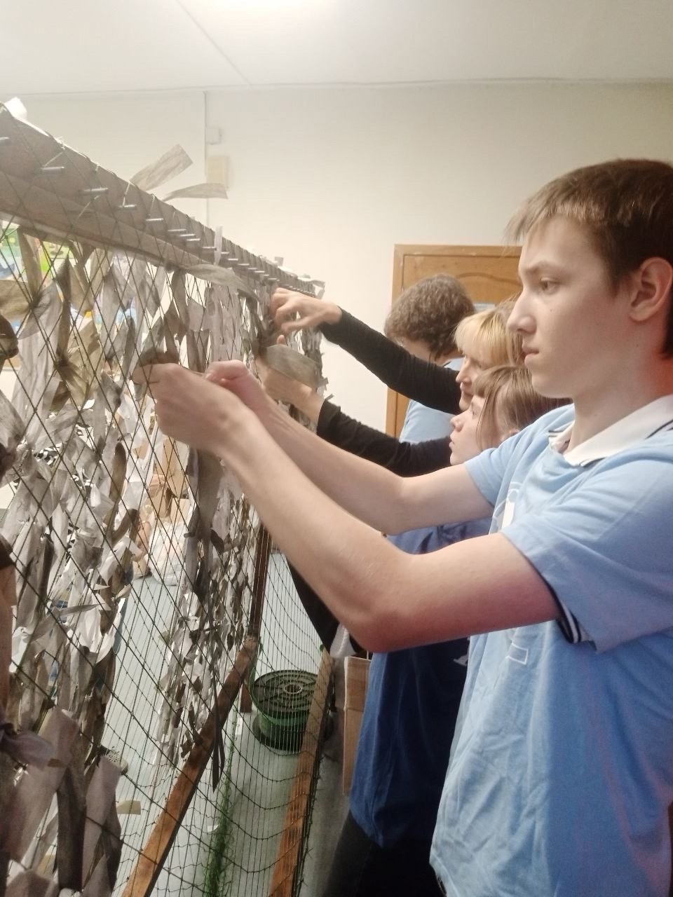 Волонтеры колледжа связи приняли участие в патриотической акции по изготовлению камуфляжных маскировочных сетей.Ребята работали в МБОУ «Классическая гимназияN54 Воскресенье». Наш отряд не в первый раз участвует в акциях Администрации Октябрьского ВГР. Шесть добровольцев сплели сеть, которая может укрыть наших бойцов и спасти им жизнь. Жизнь чьих- то отцов, братьев, сыновей. Это волонтеры- Миняев Данила, Мирзоев Хабибулло, Стешенко Евгений, Анискина Дарья, Пыжов Никита, Ананикян Тигран. Мы благодарим всех участников акции! Спасибо вам, волонтеры! #ОтделВР #ВолонтерыКС