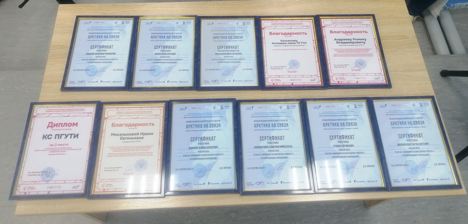 Сегодня мы встречали активистов, вернувшихся из Санкт- Петербурга с фестиваля «Первые на связи. Искусственный интеллект».В актовом зале колледжа студентов и сопровождающего-преподавателя Михалькову Ирину Евгеньевну в торжественной обстановке от лица администрации поздравила Заместитель директора колледжа связи по ИВР Холодова Евгения Андреевна. Наши студенты привезли множество наград, среди них:- благодарность директору колледжа связи Андрееву Роману Владимировичу, благодарность коллективу колледжа,диплом 3 место за командное участие в чемпионате по киберспорту среди студентов, обучающихся по программам СПО «Киберлига связи», дисциплина Dota2, 6 сертификатов участников международной конференции студентов «Арктика на связи». Молодцы, спасибо за активное участие в конкурсной программе фестиваля, популяризацию технологий искусственного интеллекта и телекоммуникаций среди молодежи!