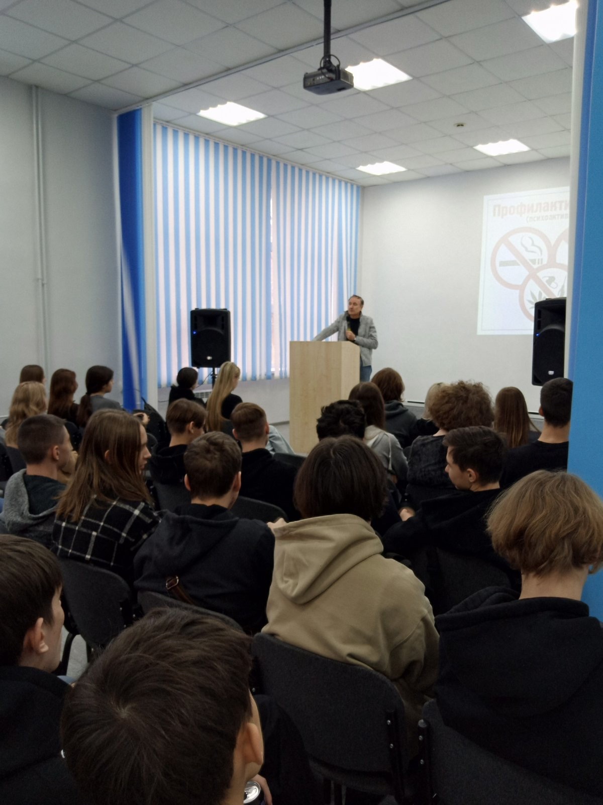 По плану профилактической работы колледжа сегодня была проведена беседа сотрудника ГБУЗ СОКНД Сидорина М. В. по теме «Профилактика употребления ПАВ».Присутствовал 121 студент колледжа и 4 педагога. Врач - нарколог в своем выступлении коснулся того, какой вред приносят курение вейпов и сигарет, потом перешёл на тему вреда алкоголя и энергетиков для организма несовершеннолетних и закончил тем, какой вред приносят наркотики. В заключении выступления был продемонстрирован фильм по тематике выступления. Михаил Владимирович ответил на все вопросы, возникшие у студентов. Благодарим всех участников мероприятия!