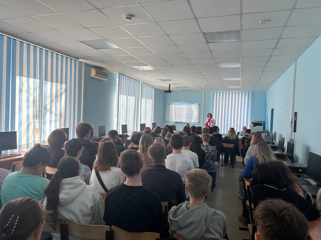 Директор колледжа выступал с презентацией, рассказав нашим гостям о наших специальностях, условиях поступления и многом другом. Сотрудники приемной комиссии отвечали на вопросы наших гостей.