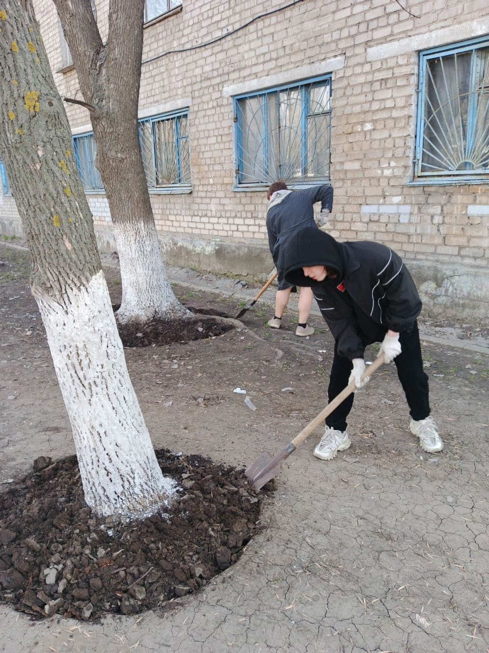 4 апреля студенты продолжили уборку на территории общежития: красили деревья, бордюры, обкапывали приствольные круги деревьев. Молодцы, ребята!