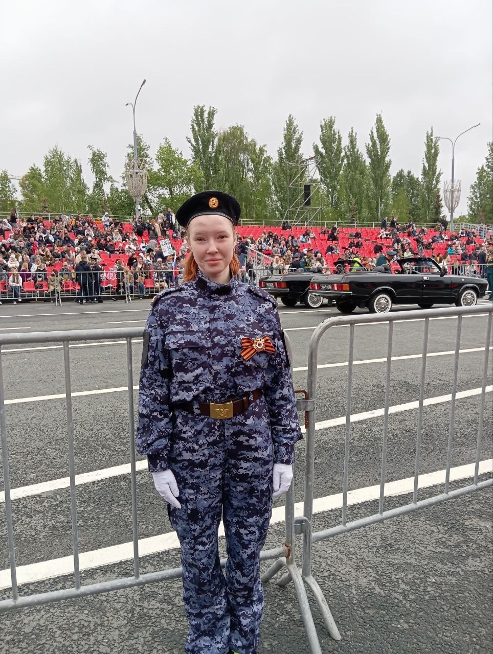 Курсант военно-патриотического клуба Колледжа связи «Пламя КС» Плаксина Виктория, студентка группы 3ПС-6 посетила в качестве зрителя «Парад Победы» в Самаре.