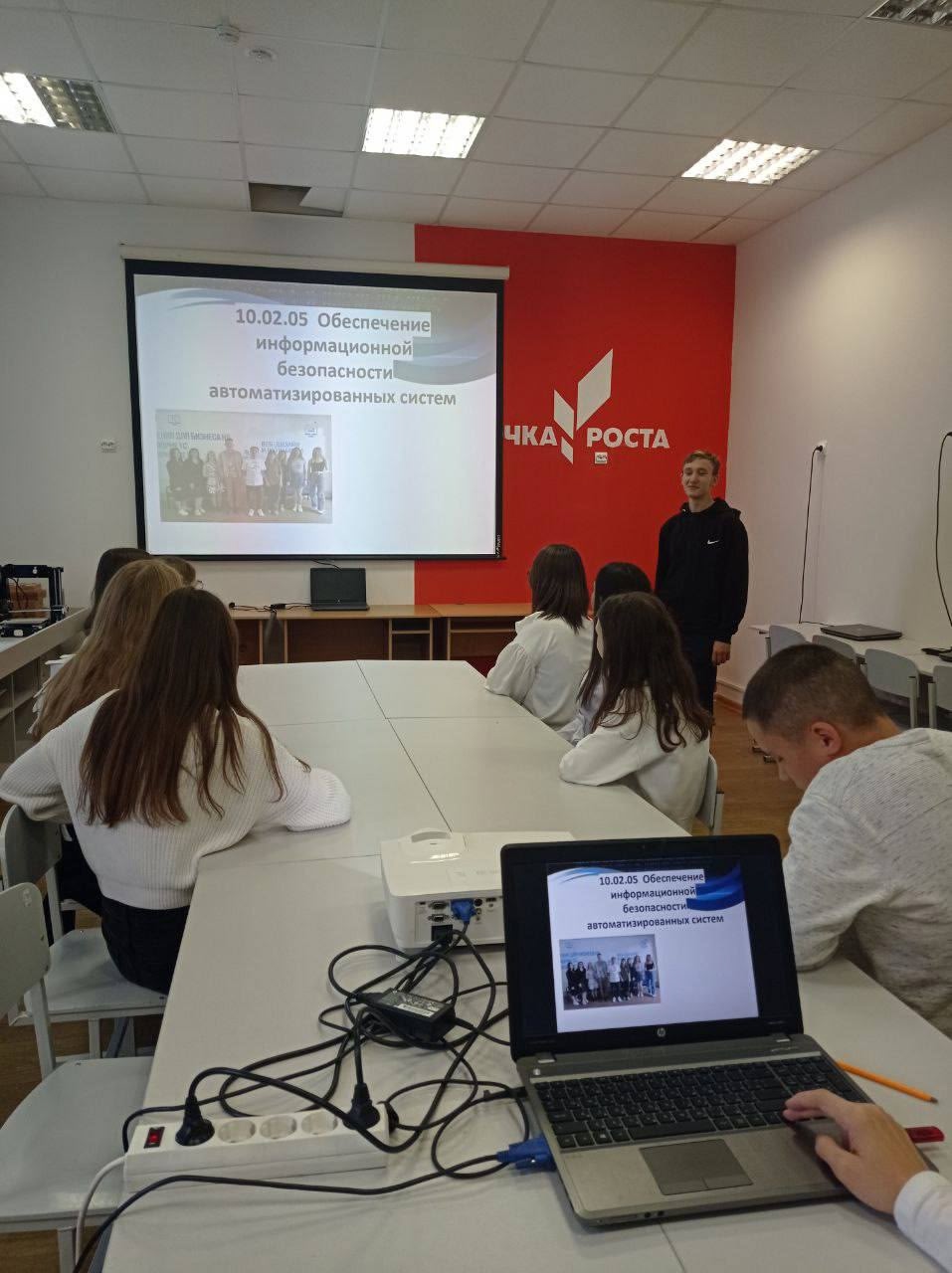 Студент группы 1ССА-19к Галеев Дамир рассказал о специальностях колледжа, выступив с презентацией для будущих абитуриентов.