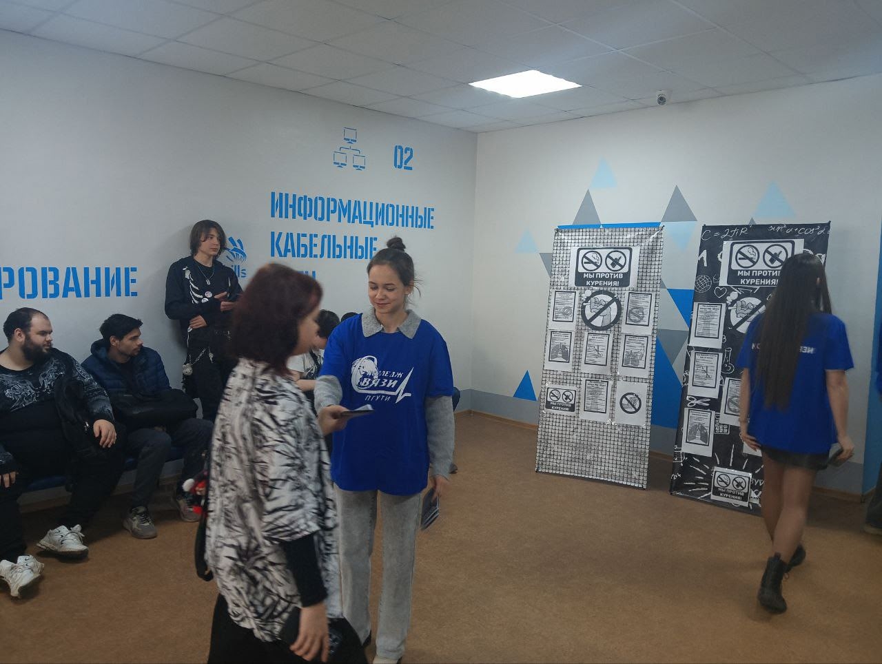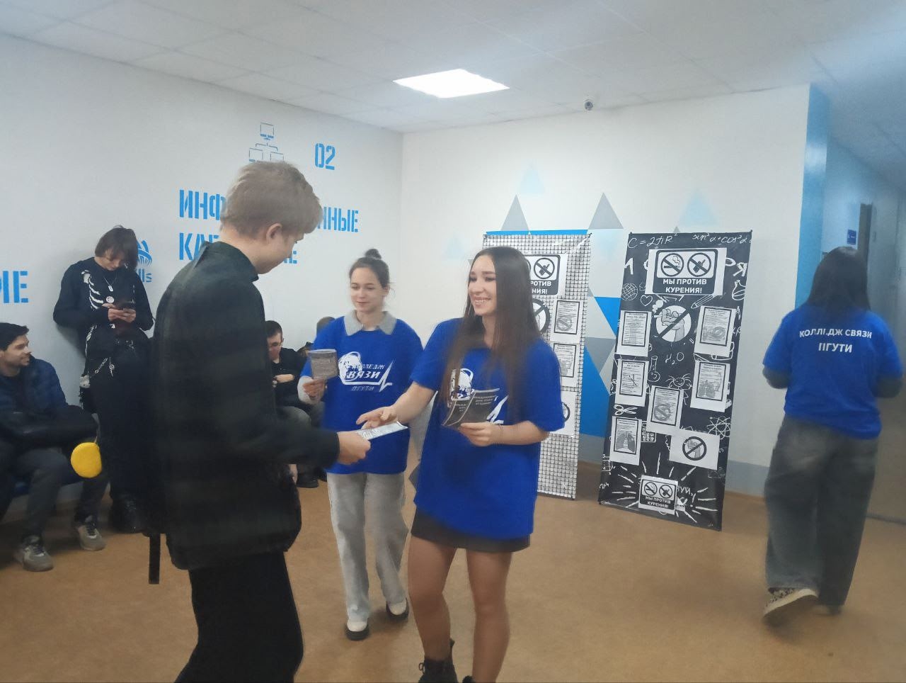В рамках Дня борьбы с курением в колледже связи ПГУТИ волонтеры провели профилактическую работу-раздали памятку о вреде никотина;