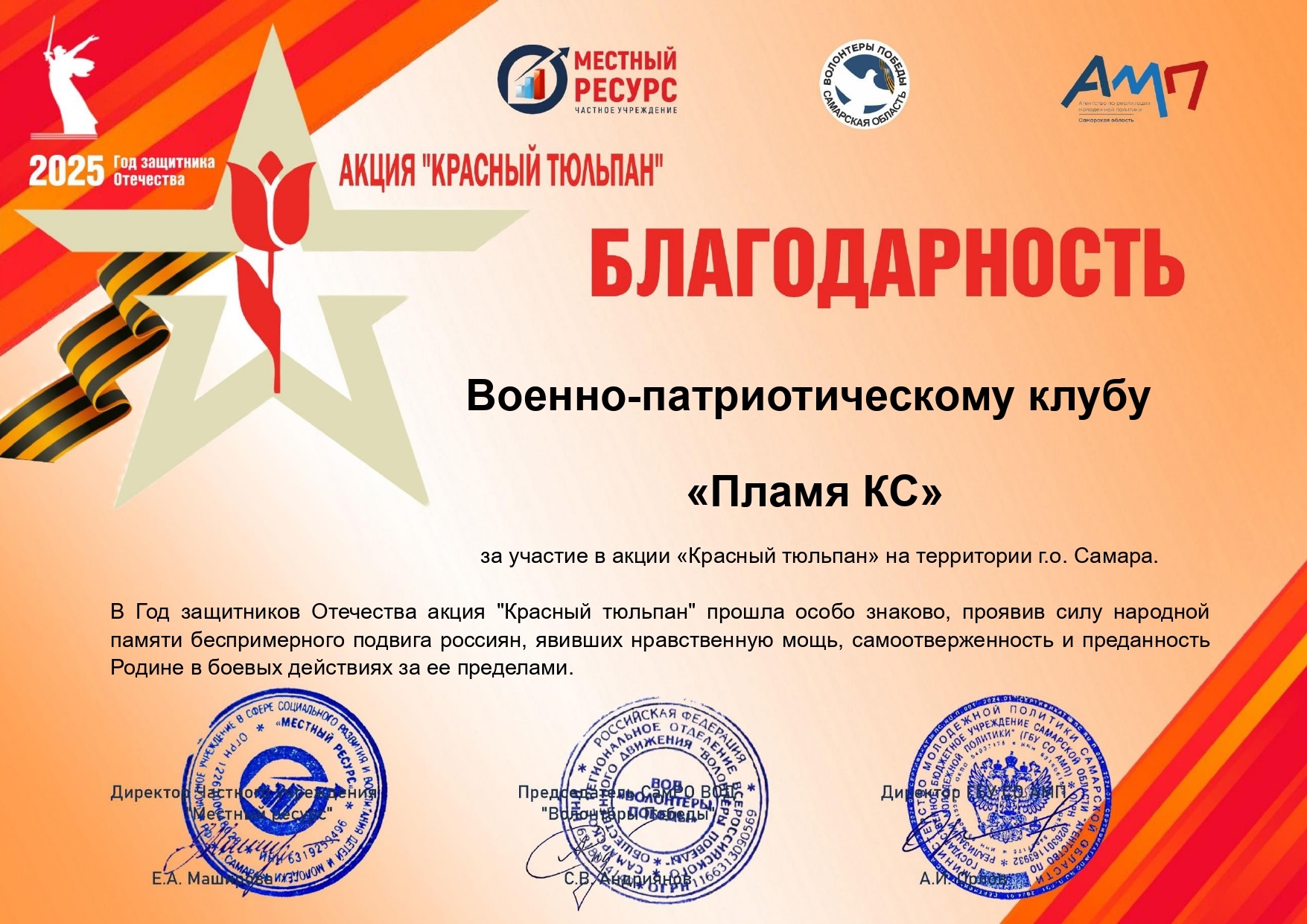Подробнее: За участие во Всероссийской акции «Красный тюльпан»