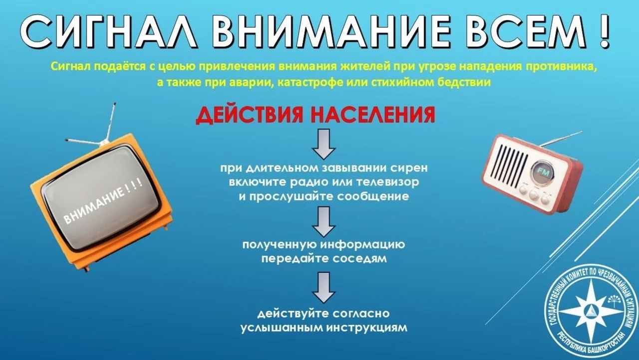 На одну минуту будет замещен эфир радио- и телеканалов. Так будет подан сигнал гражданской обороны «Внимание всем!». С его помощью проверят работоспособность муниципальных и региональных систем оповещения.
