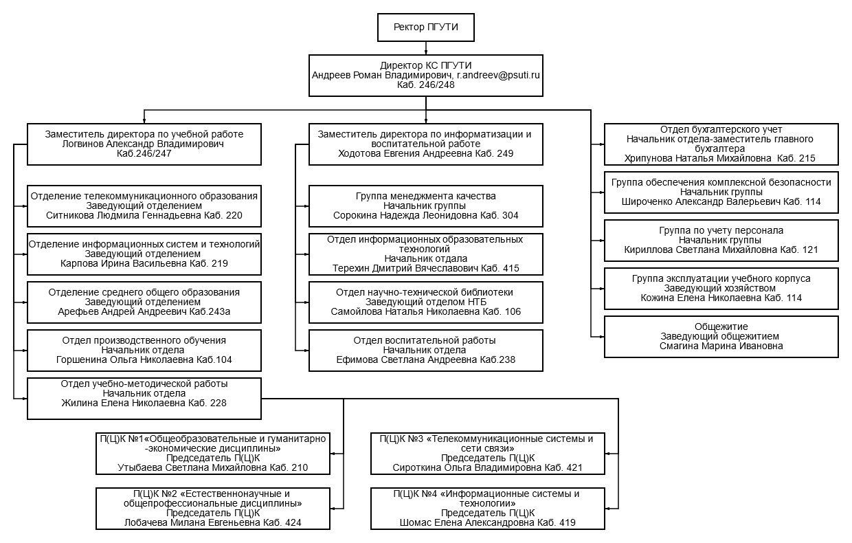 | Колледж связи ПГУТИ | Сорокина Надежда Леонидовна | Начальник группы менеджмента качества |